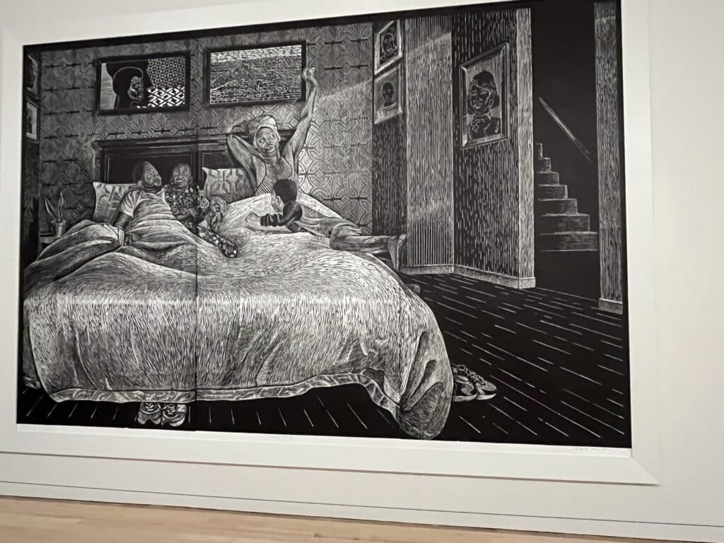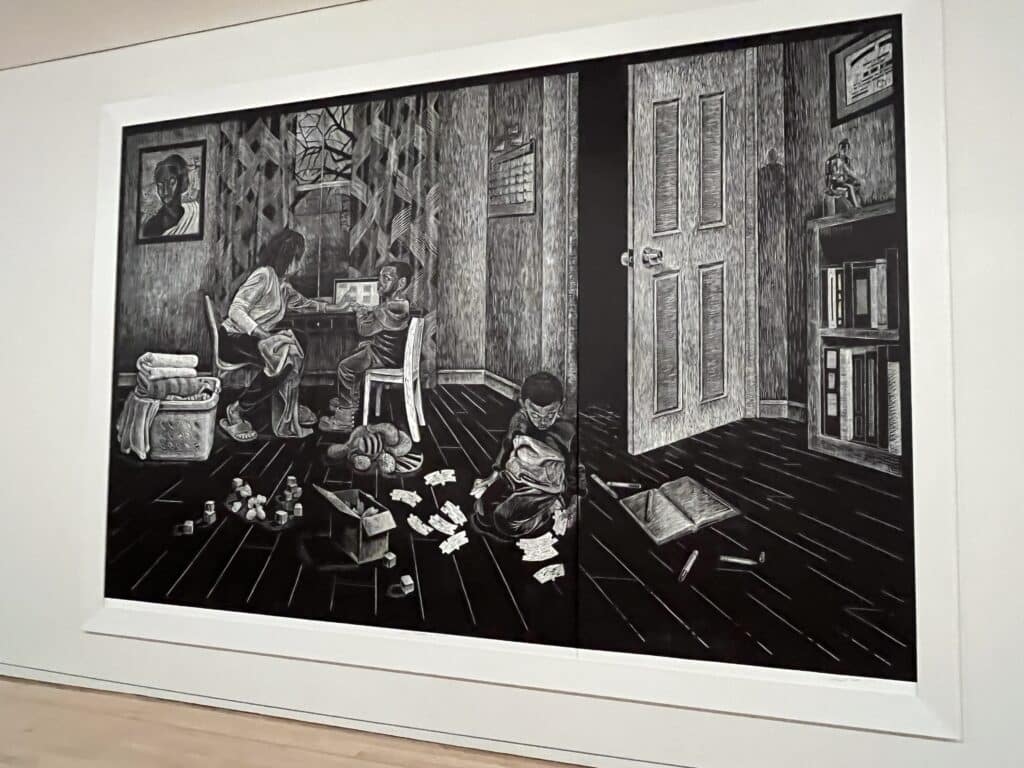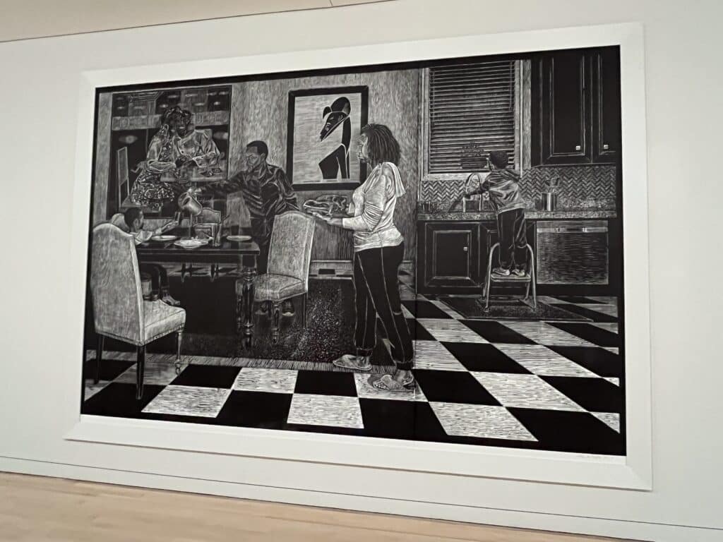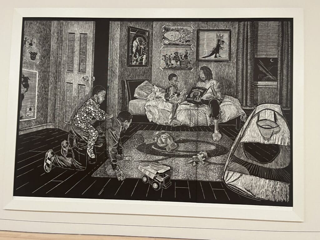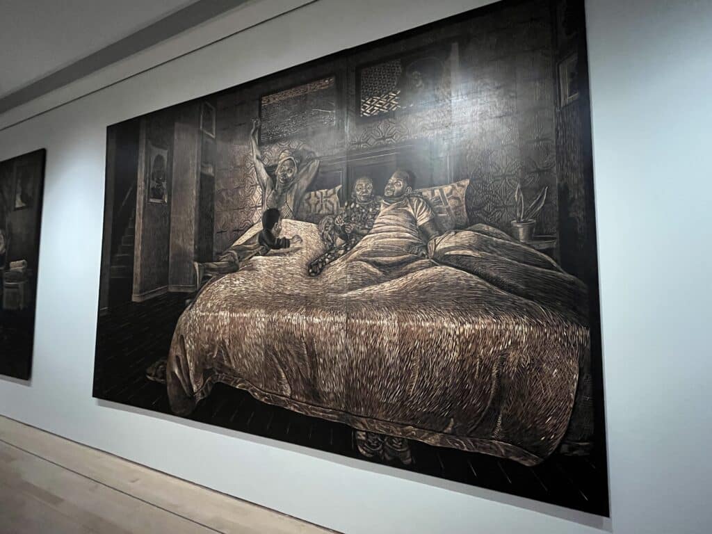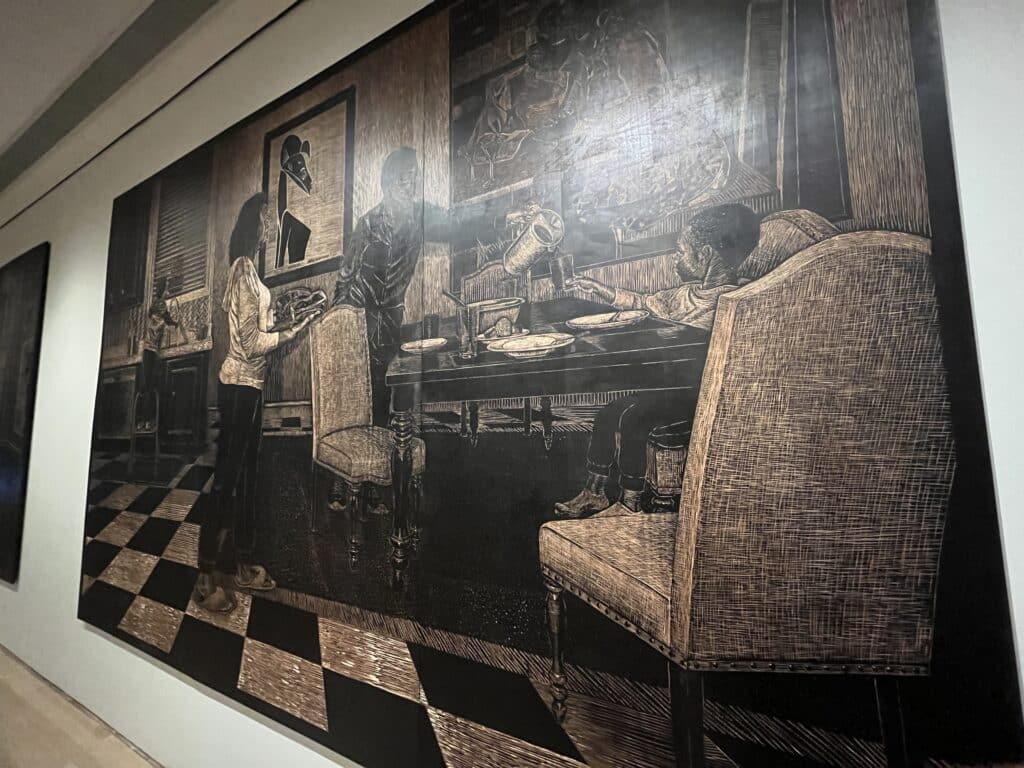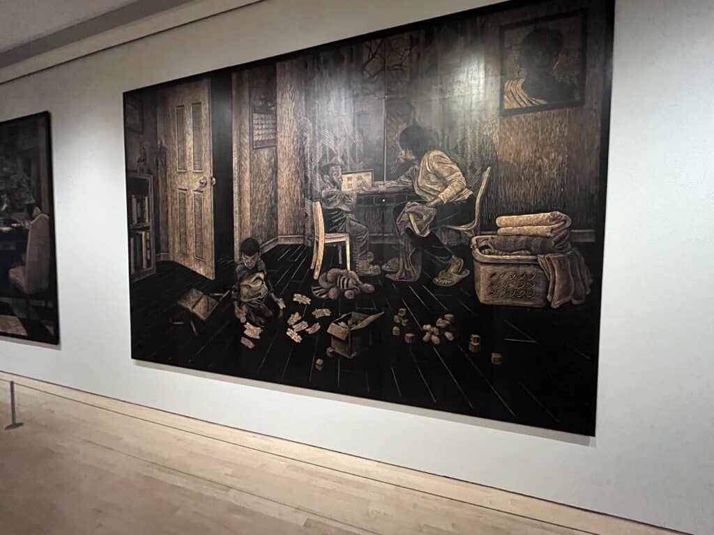 Latoya M. Hobbs is someone whose identity seems to change just as much in a day as the average person, between her roles as a mother, artist, educator, and wife. Her “Carving Out Time” collection romanticizes her and her family’s average day-to-day life on eight-by-twelve-foot wood panels that can be seen at the Milwaukee Art Museum(MAM) until January 25, 2025.