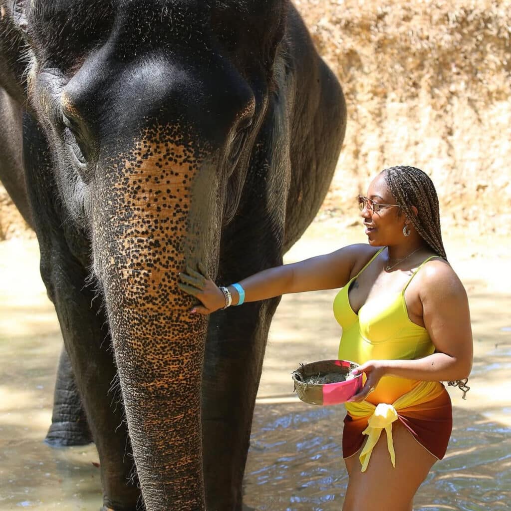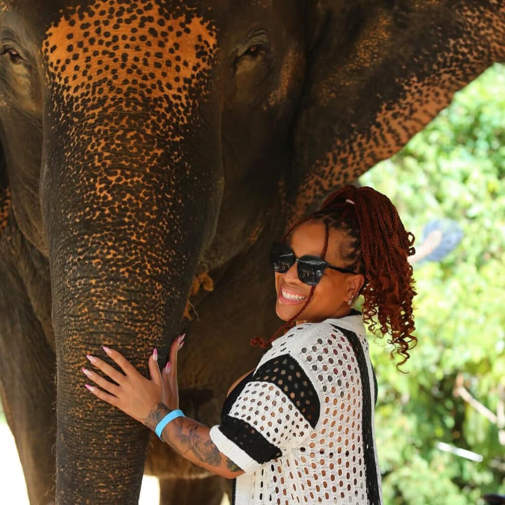 This was Kweku TeAngelo Cargile Jr. and his wife Kahina Cargile’s first We Be Abroad trip. Celebrating six years of marriage, they fulfilled childhood dreams—his with tigers, hers with elephants.
